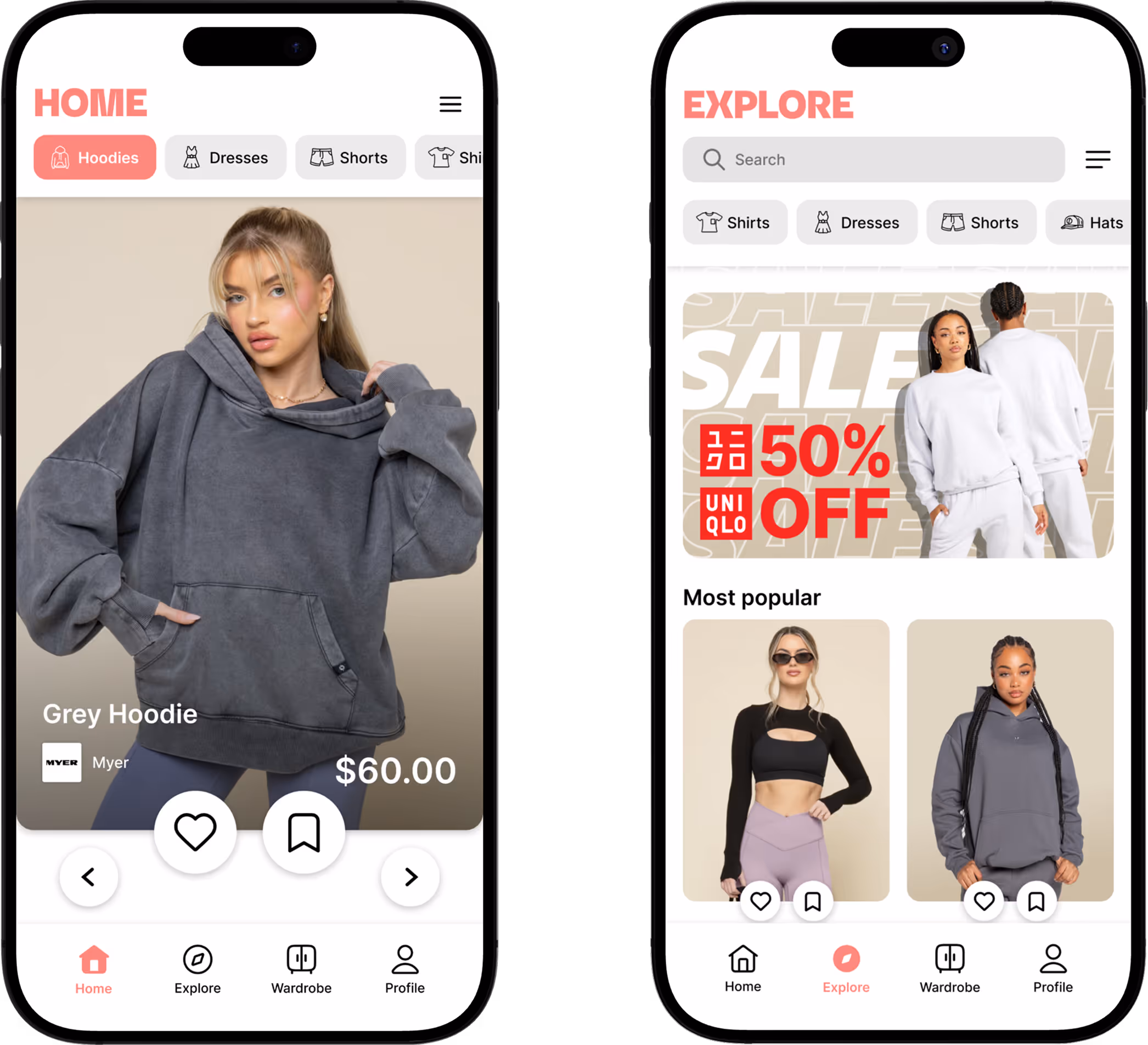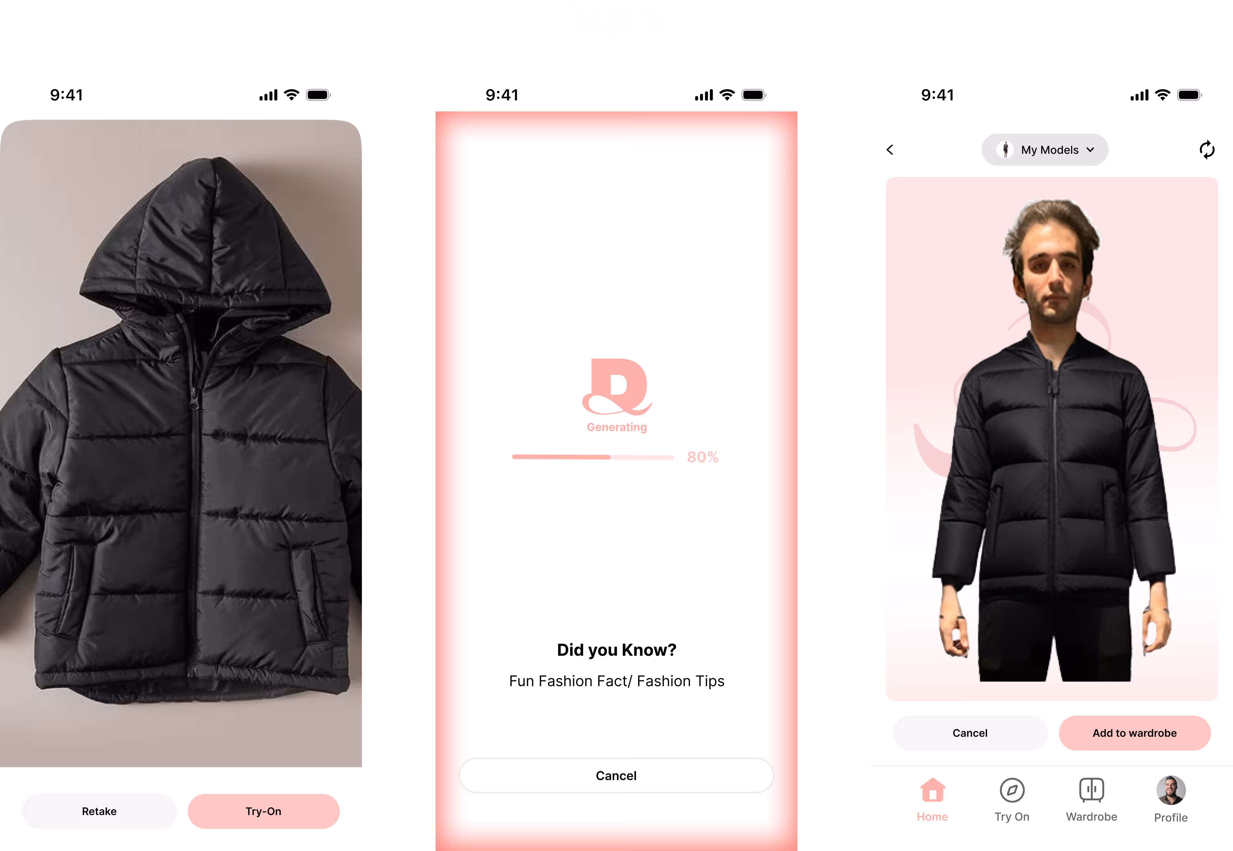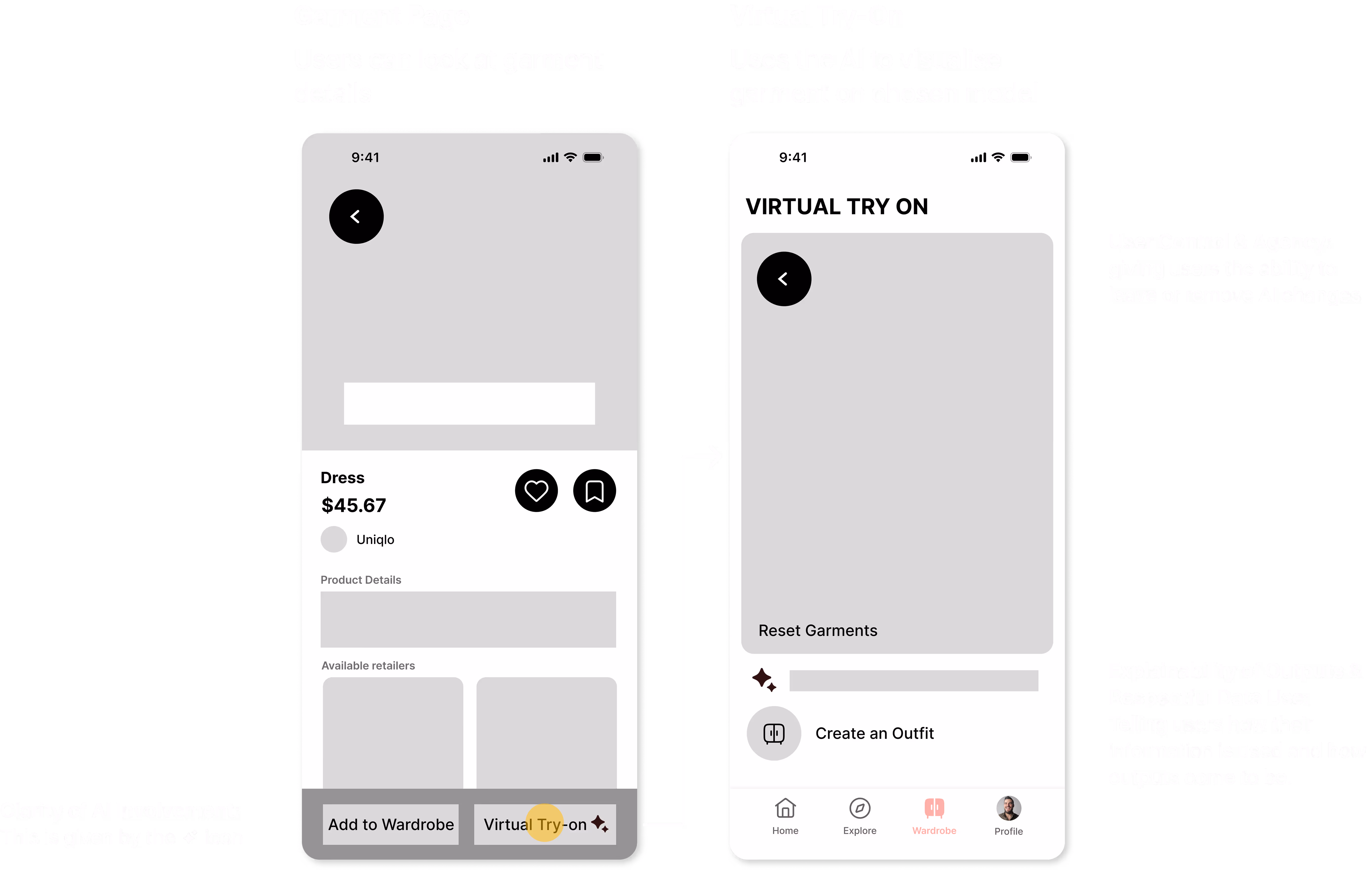 My primary focus was designing the home experience and the AI-powered virtual try-on feature, with particular attention to creating intuitive, transparent interactions for AI-driven functionality.
